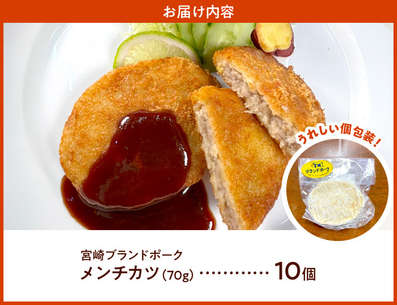 <便利な個包装>宮崎ブランドポークメンチカツ70g×10個 N124-YA950