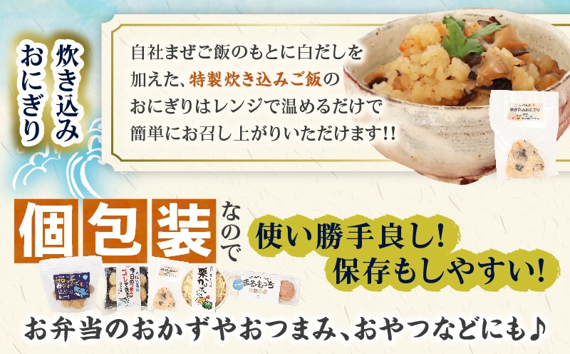 | 容量 | 【合計5種】 ・カジキの旨味 135g×1パック ・のび~るチーズの栗かぼちゃ 130g×1個 ・まるもっちセット 135g(4個入)×1パック ・コロッケジョーズ(上手) 220g(10個入)×1パック ・炊き込みおにぎり 100g×1個 |
