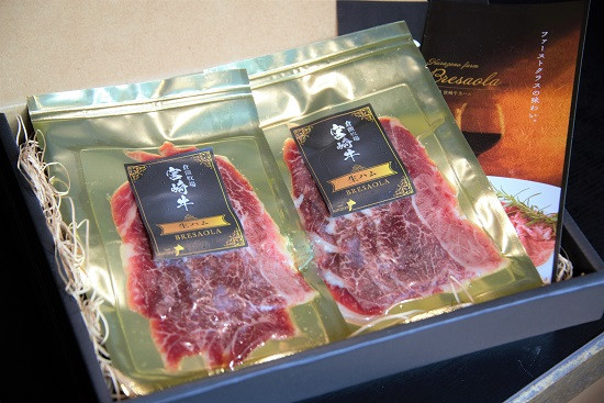 ANAファーストクラスに採用された宮崎牛ブレザオラ(生ハム)。