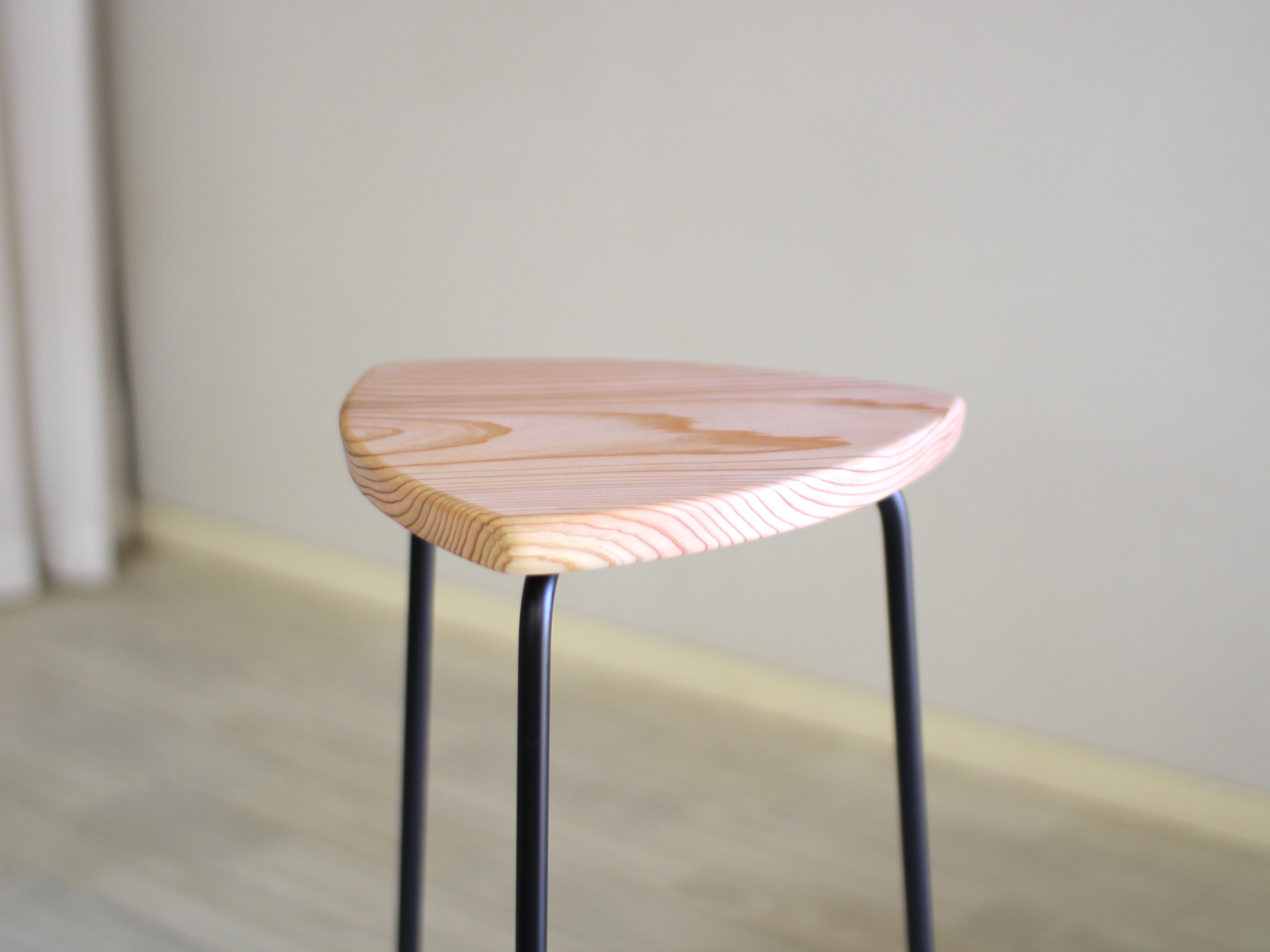 無垢の木材と鉄の脚を組み合わせたスツールです。