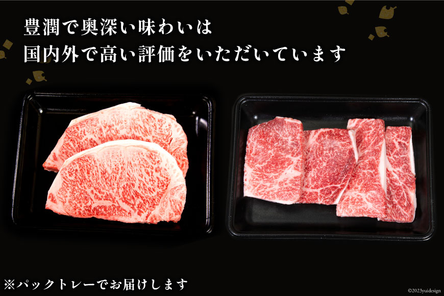 | 容量 | ・宮崎牛ロースステーキ 250g×2 ・宮崎牛モモステーキ 100g×4 ※パックトレーでお届けします。 合計 900g |