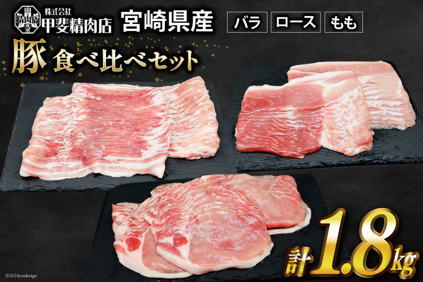 宮崎県産豚しゃぶの3種食べ比べ!真空パックでお届け 豚肉 宮崎県産 しゃぶしゃぶ 食べ比べ 300g×各2袋×3種 計1.8kg [甲斐精肉店 宮崎県 日向市 452060711] 肉 お肉 豚 豚バラ ロース もも 冷凍 小分け 真空 個包装 精肉