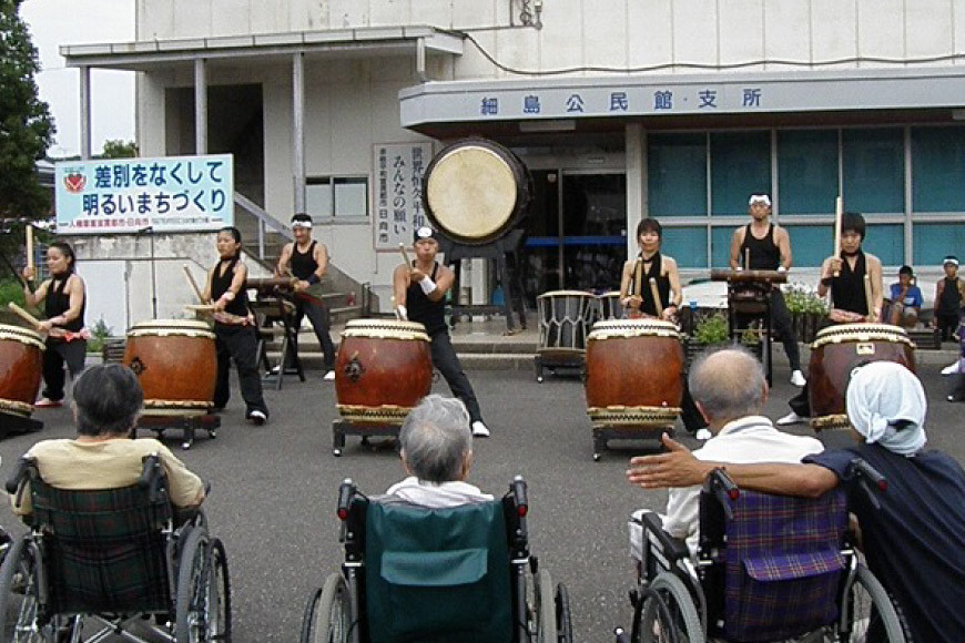 貴方の寄附金により、日向市内のイベントや老人ホームや学校に出張演奏・太鼓体験に伺い、会場を元気に盛り上げます。