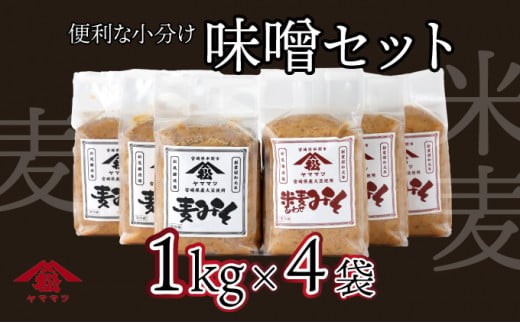 V-A3 宮崎県産のこだわりの大豆使用!ヤママツ味噌セット(合計4kg、麦味噌1kg×2個・あわせみそ1kg×2個)【松尾醸造場】