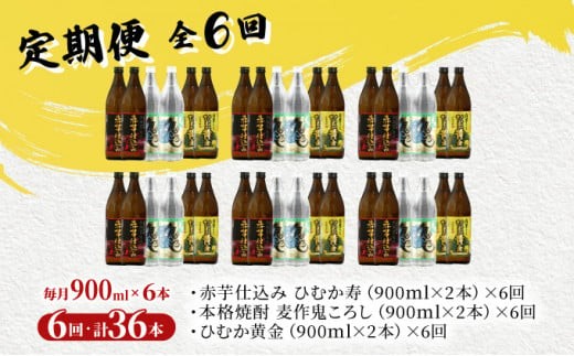 寿海酒造の本格焼酎を飲み比べ! KU194【定期便・全6回】《数量限定》 寿海酒造 本格芋焼酎定期便6回コース 計36本(900ml×36本)串間市の逸品を飲み比べ