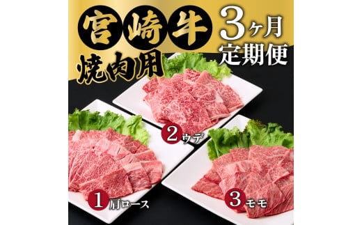 MCT3UY-12 【定期便・全3回】宮崎牛焼肉 3ヶ月定期便!合計1.2kg