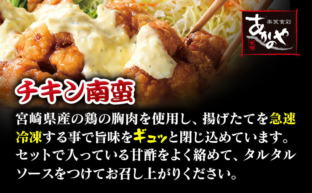 | 容量 | チキン南蛮:150g×2 焼き冷汁:70g×2×2 炭火焼(鶏もも肉):100g×2 手羽先の炭火焼:5本×2 |