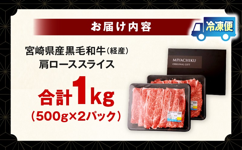 宮崎県産黒毛和牛(経産)肩ローススライス 1kg(500g×2)