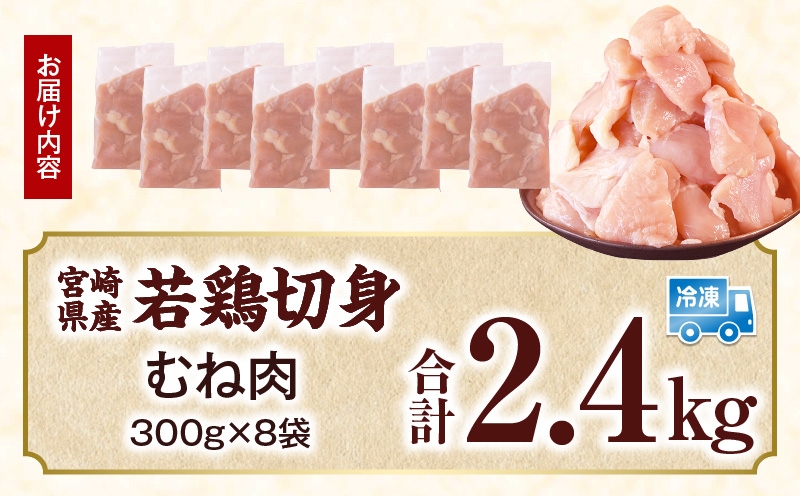 宮崎県産 若鶏切身 むね肉 2.4kg(300g×8袋)