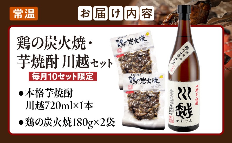 芋焼酎「川越」720ml + 鶏の炭火焼180g×2袋