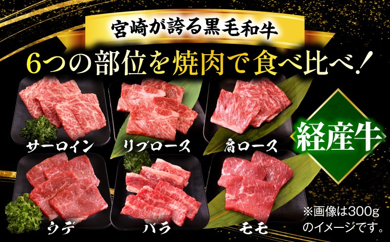 焼肉用にカットした、宮崎県産黒毛和牛(経産)の6つの部位を食べ比べできるセットをお届けいたします!