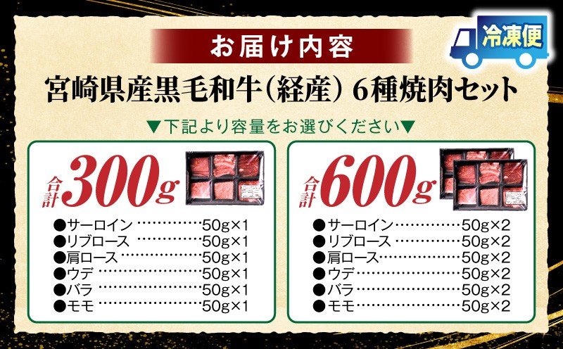 【選べる内容量】宮崎県産黒毛和牛(経産)6種焼肉セット