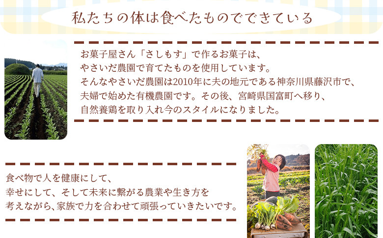 土を耕す、ひよこを育てる、そこから始める国富町のお菓子屋さん「さしもす」のシフォンケーキセットです。