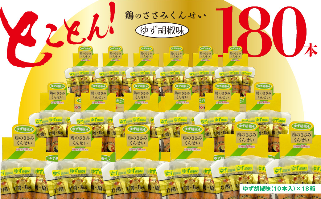 | 容量 | 鶏のささみくんせい【柚子胡椒味】 180本(18箱×10本) |