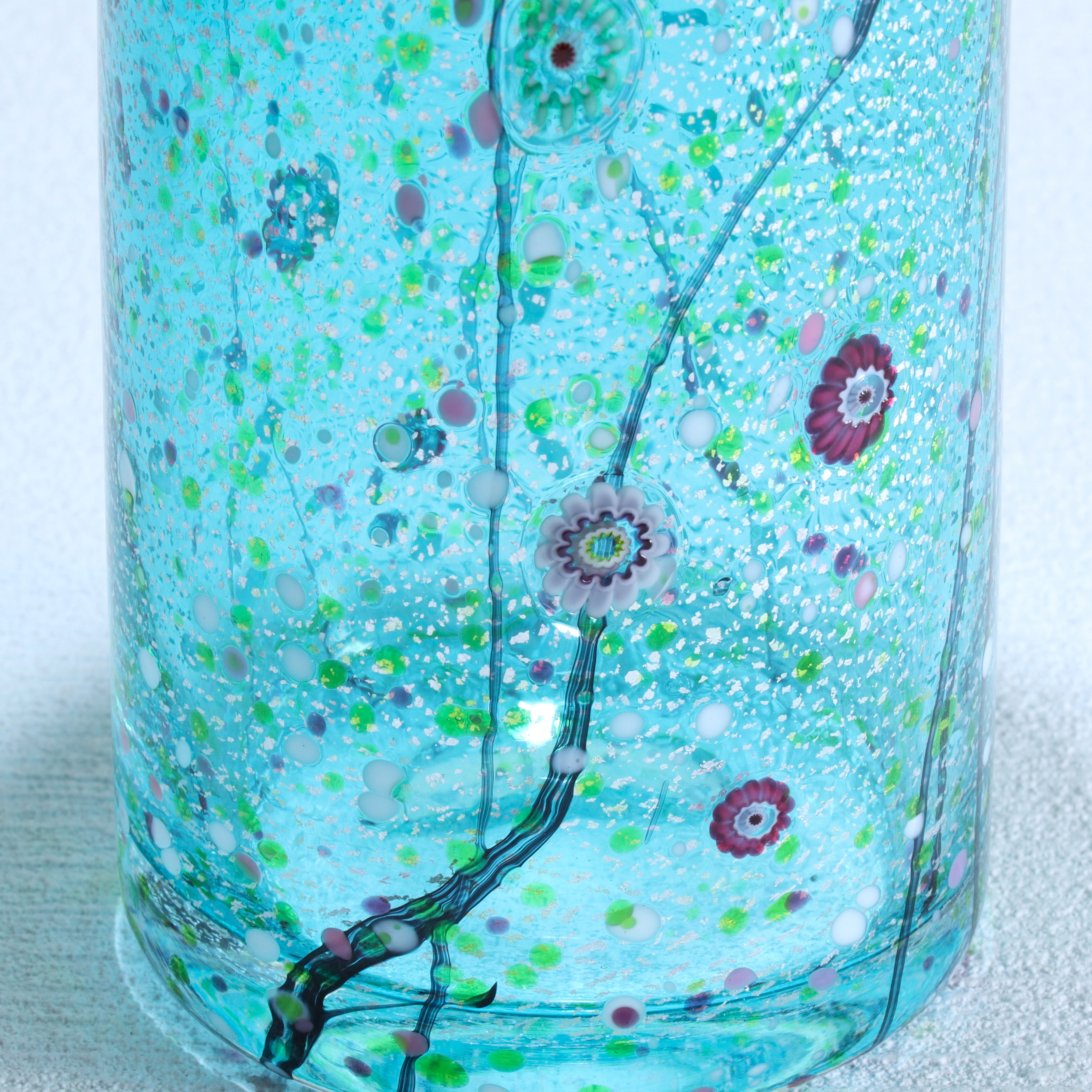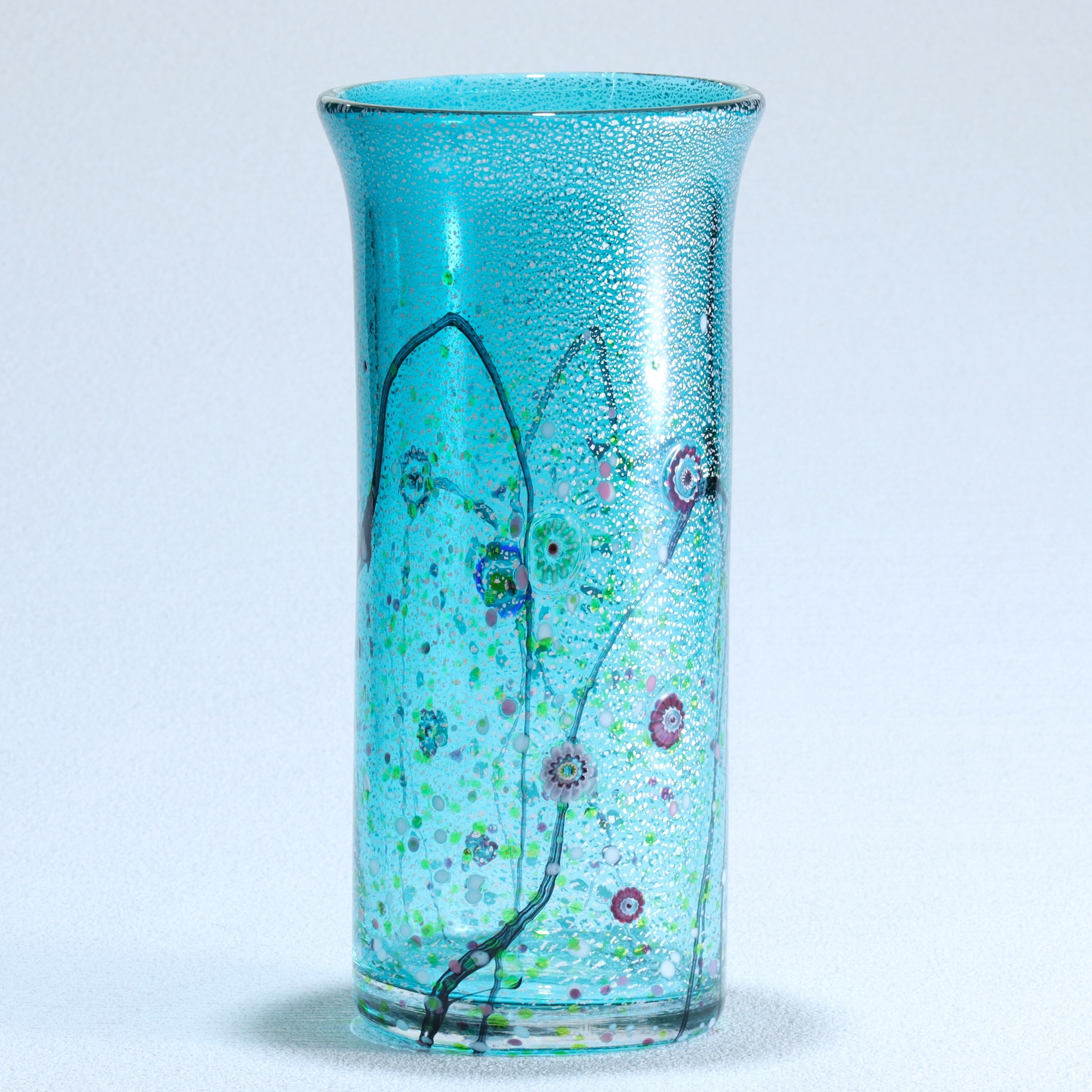 国の「現代の名工」 ガラス工芸家 黒木国昭氏の代表作 花器「光琳」筒型(カラー:トルコグリーン)【グラスアート黒木】_A0004-005