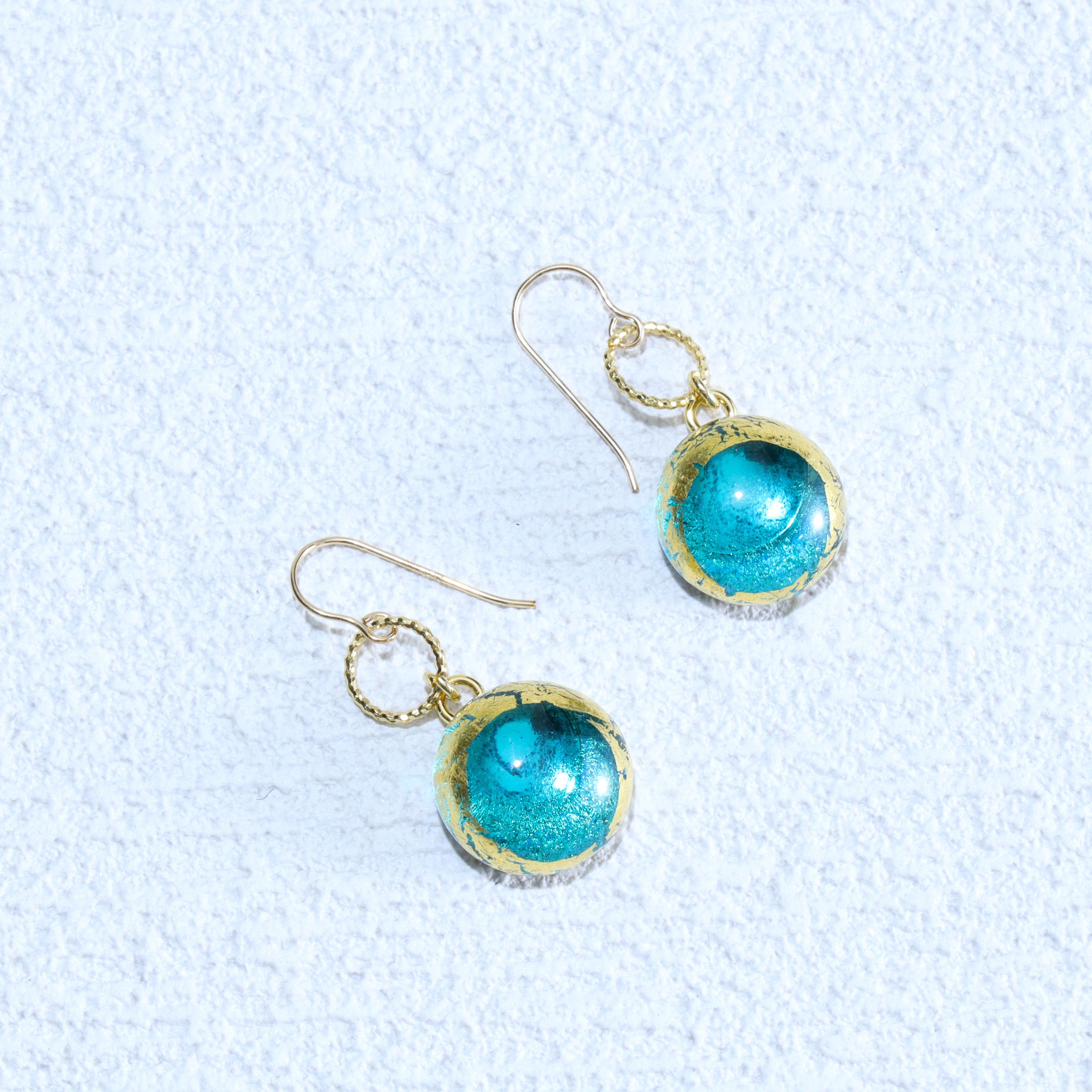 「グラスアート黒木」で制作されたピアス 耳元で揺れ動きキラキラと輝きます アクセサリー 金彩ピアス(カラー:オーシャンブルー)【グラスアート黒木】_A0004-019