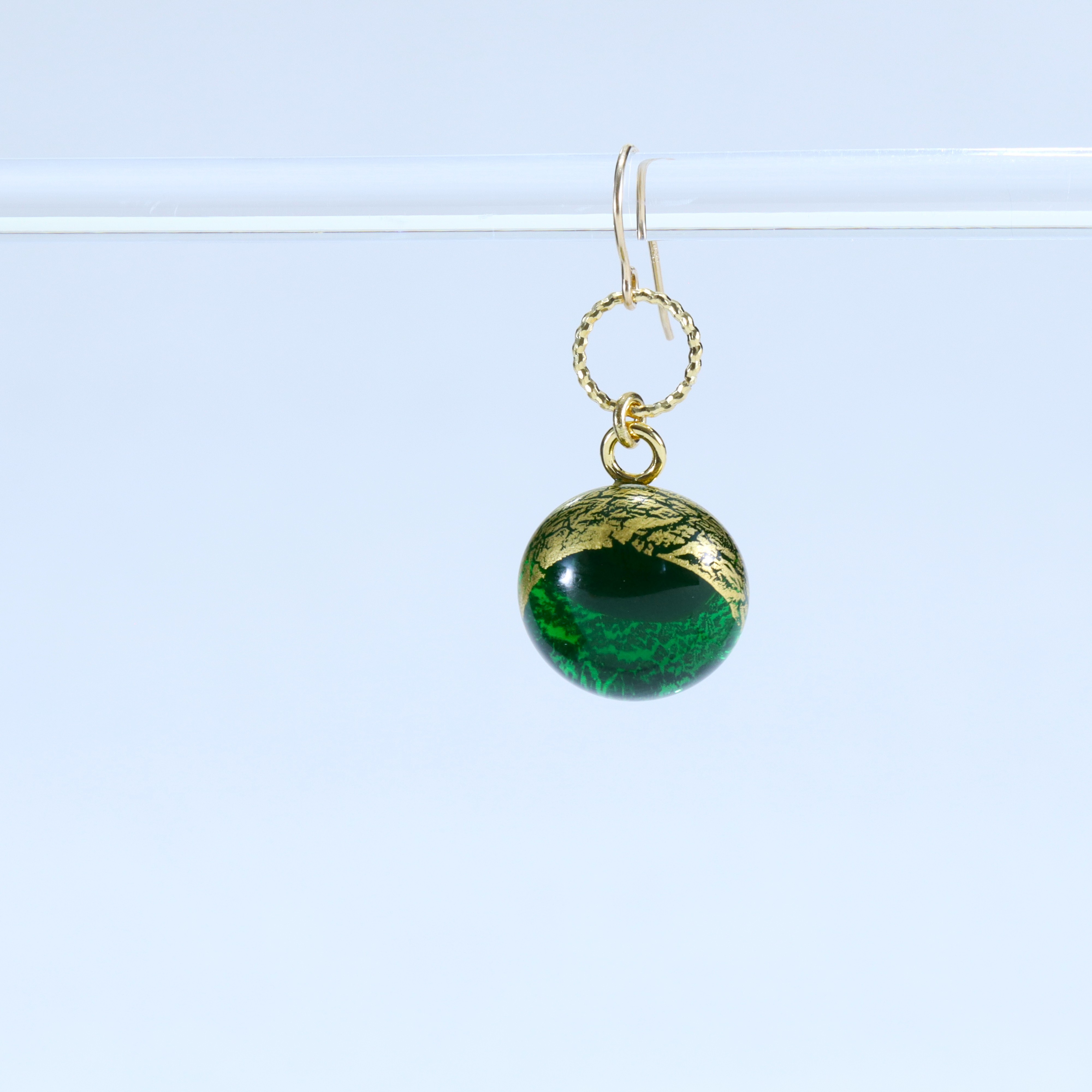 「グラスアート黒木」で制作されたピアス 耳元で揺れ動きキラキラと輝きます アクセサリー 金彩ピアス(カラー:グリーン)【グラスアート黒木】_A0004-021