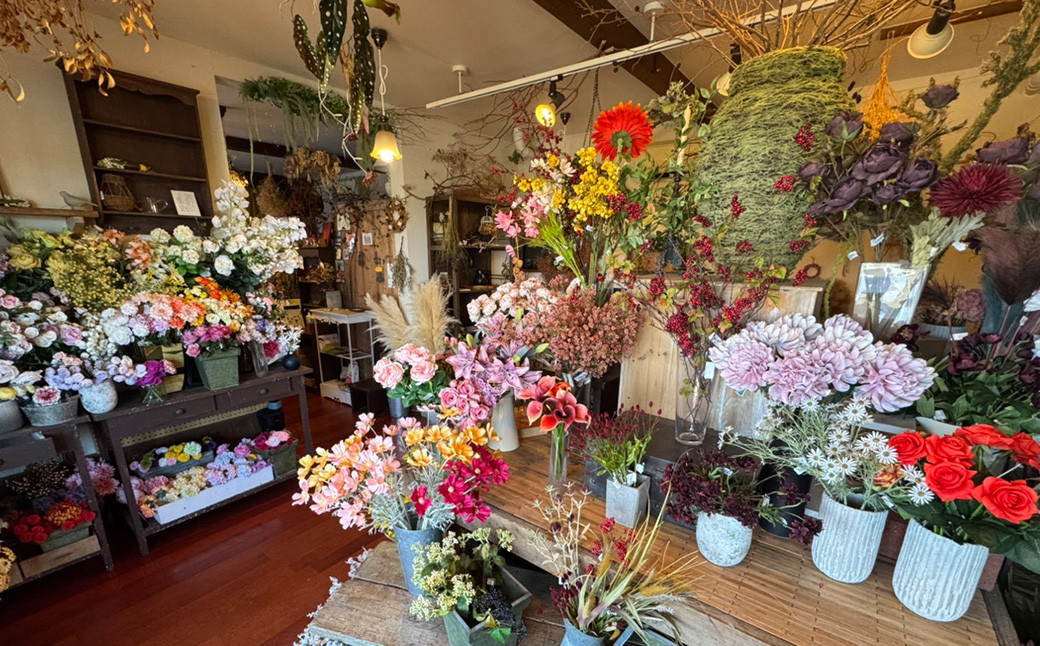 まるで生花のような枯れないお花「アーティフィシャルフラワー(造花)」を使用し、ひとつひとつ丁寧にアレンジしています。