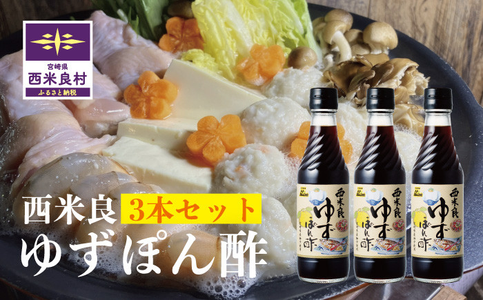 冬の鍋料理にぴったり!ゆずの豊かな旨みと香りがぎゅっと詰まっています。 西米良ゆずぽん酢 3本セット ポン酢 ゆずポン酢 鍋物 鍋 汁物 魚 焼き魚 調味料 ゆず加工品 お正月 年末 宮崎県 西米良村