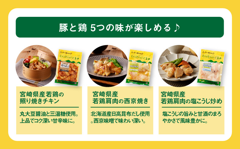 【豚肉加工品 みそ豚 生姜焼き 宮崎県産若鶏 照り焼きチキン 塩こうじ炒め 西京焼き 味付き肉 焼くだけ 5種類×3 鶏肉加工品 お弁当に 時短料理 国産豚肉 国産若鶏 お惣菜】