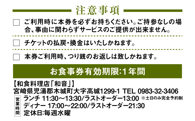 木城町 和食料理店「和音」お食事券 1,000円分 K10_0030