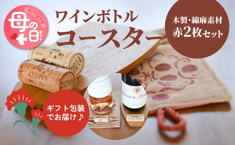 こころ踊るワイングッズで楽しいワインライフを♪ 【母の日ギフト】ワインボトル・コースター2枚セット(木製、手染め綿麻素材 赤各1枚) K15_0003_2