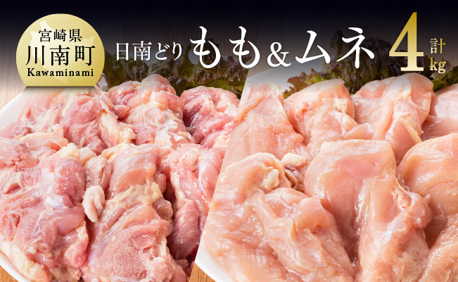 日南どりは、「健康な鶏は美味しい」のコンセプトを基に、飼育された銘柄鶏です 宮崎県産若鶏 日南どり もも肉&むね肉 計4kg(各2㎏×1) 【 鶏肉 鶏 若鶏 もも むね セット 宮崎県産 川南町 おうち時間 おうちごはん 送料無料 】