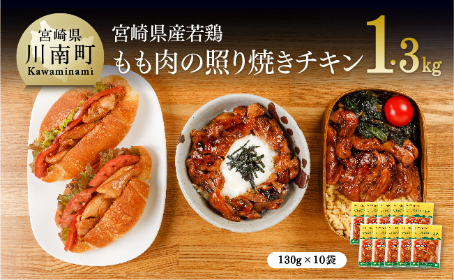 お弁当 おかず 若鶏 ジューシー 照り焼きチキン おうち時間 おうちごはん もも 宮崎県産若鶏 若鶏の照り焼きチキン 計1.3kg(130g×10袋)【国産 鶏肉 九州産 惣菜 肉 とり 小分け 簡単調理 肉加工品 照り焼きチキン 照焼 若鶏 】