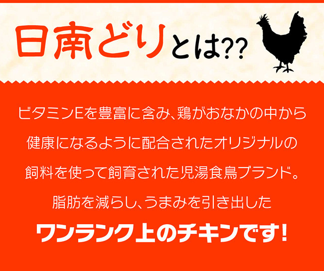 日南どりは、「健康な鶏は美味しい」のコンセプトを基に、オリジナルの飼料を使って飼育された宮崎の銘柄鶏です。