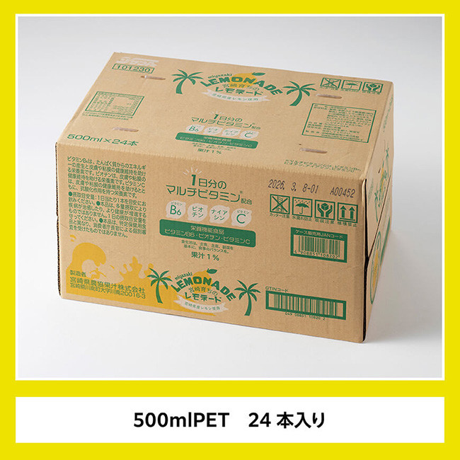 宮崎県産のマイヤーレモンを使用したレモネード。栄養機能食品 長期保存 飲料 備蓄 サンA宮崎育ちのレモネード500mlPET 24本入り【飲料 栄養機能食品 レモン 檸檬 マルチビタミン配合 PET セット ジュース 長期保存 備蓄 送料無料】
