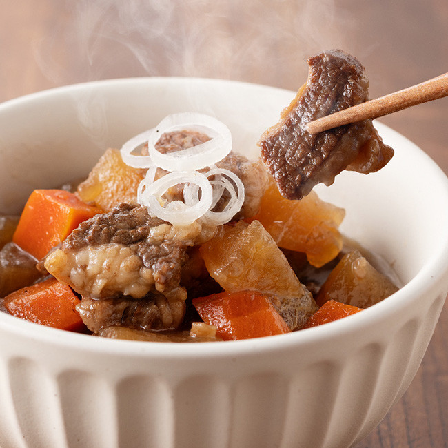 川南町産黒毛和牛を醤油と砂糖で煮込みました!宮崎県のを地元の味お楽しみください。