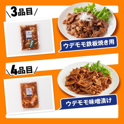 | 容量 | 肩ロースしゃぶしゃぶ用180g ウデモモ鉄板焼き200g ウデモモ味噌漬け200g 餃子(8個入)2パック 生ハムモモ切落し120g ハンバーグ3個 |