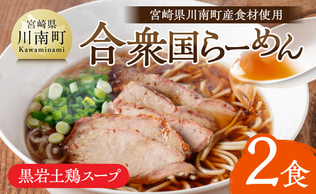 幻の豚肉と呼ばれている「南の島豚チャーシュー」を50gトッピングしています! 宮崎県川南町産食材使用 合衆国らーめん(黒岩土鶏スープ)2食 【 ラーメン 玄米麺 豚チャーシュー 宮崎県 川南町 送料無料 】