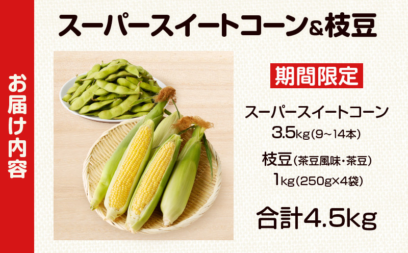 人気 ギフト 食品 とうもろこし BBQ 贈り物 送料無料 プレゼント 先行予約≪期間限定≫スーパースイートコーン&枝豆(茶豆風味・茶豆)セット(合計4.5kg) 旬 野菜 国産_T003-0015