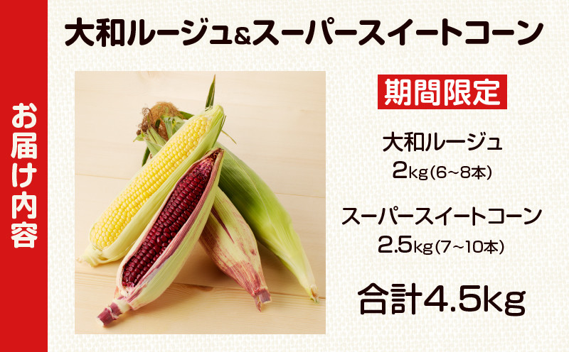 人気 ギフト 食品 おやつ グルメ BBQ 贈り物 お土産 送料無料 プレゼント 先行予約≪期間限定≫赤いスイートコーン大和ルージュ&スーパースイートコーンセット(合計4.5kg) 野菜 旬 国産_T003-0085