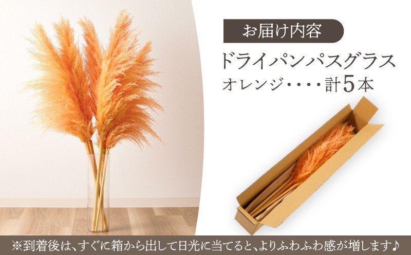 人気 ギフト 花束 セット 植物 鑑賞用 贈り物 お土産 送料無料 プレゼント 【2週間以内発送】ドライパンパスグラス(オレンジ)計5本 すすき インテリア 国産_T057-003