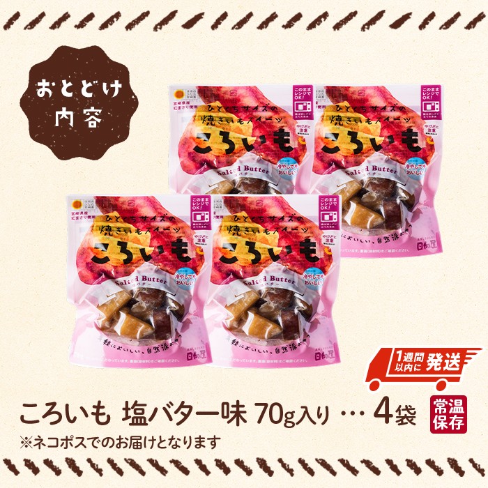 <入金確認後1週間以内発送予定!>ひとくちサイズの焼き芋スイーツ!自然派おやつ <1週間以内発送!>焼き芋 スイーツ ころいも 塩バター味 (計280g・70g×4袋) 常温 保存 焼芋 やきいも さつまいも さつま芋 レンジ 小分け おやつ 【AP-83】【株式会社 日向屋】