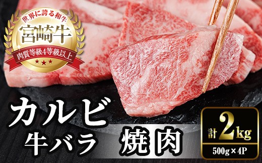 宮崎牛 カルビカット 焼肉 (計2kg・500g×4) 焼肉 お肉 牛肉 黒…