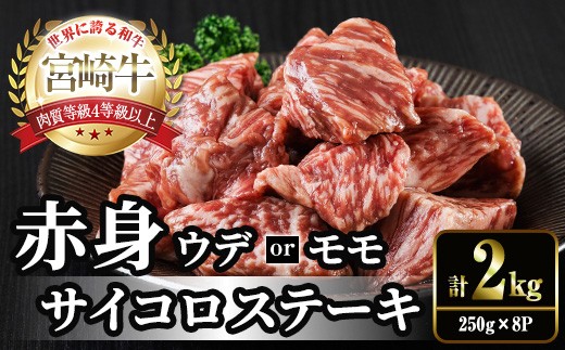 宮崎牛 赤身 サイコロステーキ(計2kg・250g×8) お肉 牛肉 黒毛…