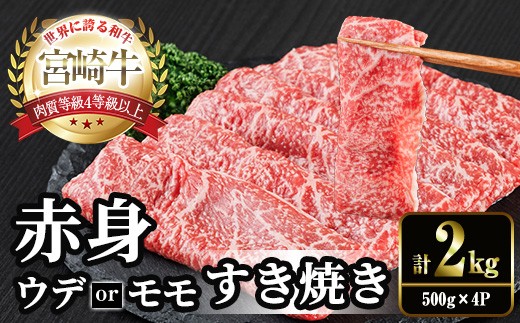 宮崎牛 赤身カット すき焼き (計2kg・500g×4) すき焼き お肉 牛…