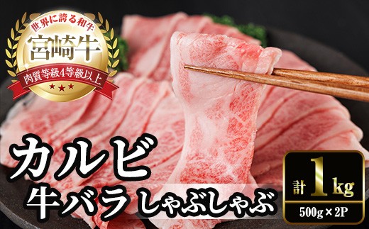 宮崎牛 カルビカット しゃぶしゃぶ (計1kg・500g×2) しゃぶしゃ…