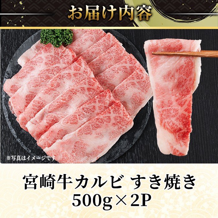 宮崎牛 カルビカット すき焼き (計1kg・500g×2) すき焼き お肉 …
