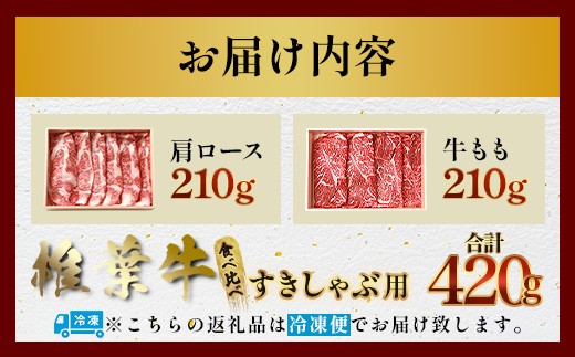 日本三大秘境の地椎葉村よりA5等級の椎葉牛をお届け!! 【A5ランク】 椎葉牛 すき焼き 2種 食べ比べ 肩ロース210g・牛もも210g 計420g すき焼き しゃぶしゃぶ | ふるさと納税 すき焼き しゃぶしゃぶ 肉 牛肉 高級肉 黒毛和牛 国産 モモ 肩ロース 宮崎県 椎葉村 人気 送料無料 | TK-110