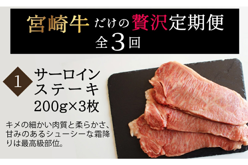 宮崎牛のサーロイン・もも・リブロースをステーキでお届けする定期便です。 3回 定期便 宮崎牛 ステーキ 3ヶ月 コース 合計 2kg [マルミヤストア 宮崎県 美郷町 31ag0132] 肉 牛 牛肉 サーロイン もも モモ リブロース 黒毛 和牛 国産 A4 A5 冷凍