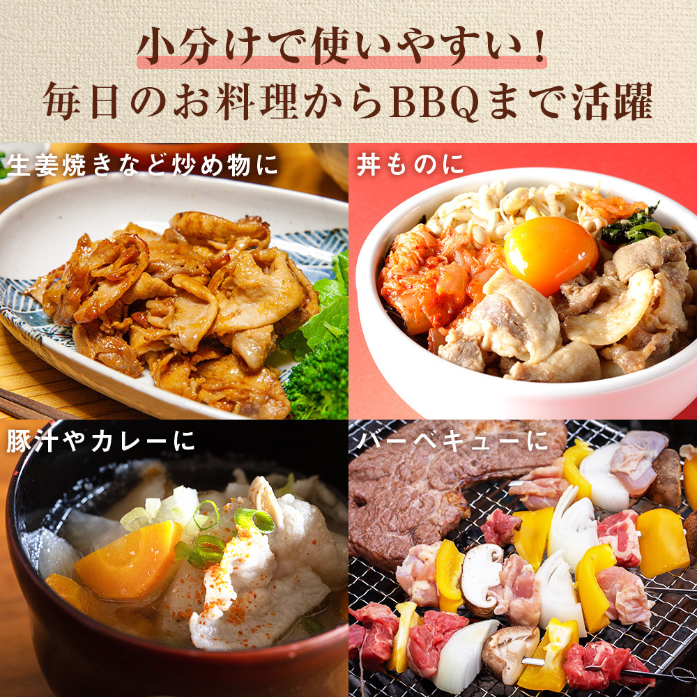 | 容量 | 宮崎県産豚肉・鶏肉お料理セット6ヶ月定期便 【1月目】 ・宮崎県産豚切り落とし 300g×2袋 ・宮崎県産豚ロース生姜焼き用 300g×2袋 ・宮崎県産豚ロースとんかつ用 3枚入(300g相当)×2袋 【2月目】 ・宮崎県産豚切り落とし 300g×2袋 ・宮崎県産豚挽き肉 300g×2袋 ・宮崎県産若鶏ももカット 300g×2袋 【3月目】 ・宮崎県産豚切り落とし 300g×2袋 ・宮崎県産豚バラスライス 300g×2袋 ・宮崎県産豚カレー・シチュー用 300g×2袋 【4月目】 ・宮崎県産豚切り落とし 300g×2袋 ・宮崎県産豚バラ焼き肉用 300g×2袋 ・宮崎県産豚挽き肉 300g×2袋 【5月目】 ・宮崎県産豚切り落とし 300g×2袋 ・宮崎県産鶏挽き肉 300g×2袋 ・宮崎県産豚ロース生姜焼き用 300g×2袋 【6月目】 ・宮崎県産豚切り落とし 300g×2袋 ・宮崎県産若鶏ももカット 300g×2袋 ・宮崎県産若鶏手羽元チューリップ 5本入×2袋 |