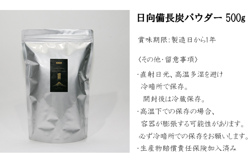 食用 日向備長炭 パウダー 500g 業務用 粉 炭 宮崎県 美郷町 着色料 お菓子 調味料 飲料 炭素 ミネラル 料理 粉末 デトックス 送料無料
