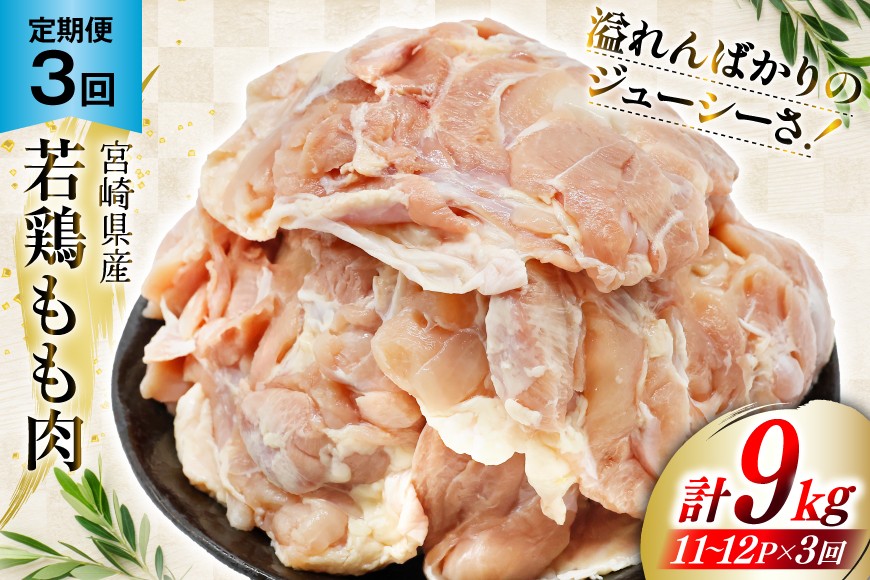 溢れんばかりのジュージーさ!宮崎県産若鶏鶏もも肉! 定期便 肉 鶏肉 3回定期便 若鶏もも身11〜12パック 計3kg [九州児湯フーズ 宮崎県 美郷町 31aj0059] 冷凍 小分け 個包装 鶏もも肉 もも肉 モモ肉