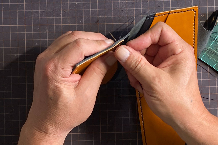全て手縫いのため、ステッチ部分に多少の曲がりがある場合があります。