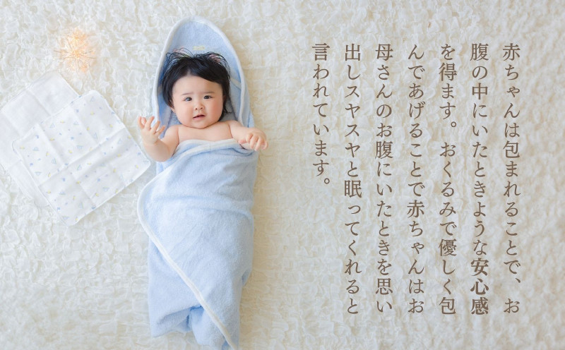赤ちゃんに優しいおくるみ・ハンカチセット[ブルー] おくるみ フード付き ガーゼハンカチ ガーゼ ハンカチ 沐浴 授乳 普段使い タオル ベビー用品 ベビーグッズ 赤ちゃんグッズ 赤ちゃん ベビー 便利 贈り物 ギフト 国産 日本製 宮崎県 高千穂町