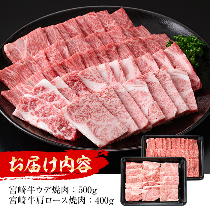 <先行予約受付中!2026年1月以降順次発送予定>宮崎牛 焼肉2種 (ウデ500g・肩ロース400g)(合計900g)国産 宮崎県産 宮崎牛 牛肉 焼肉 A4 和牛 ウデ肉【MI010】【(株)ミヤチク宮崎加工センター】